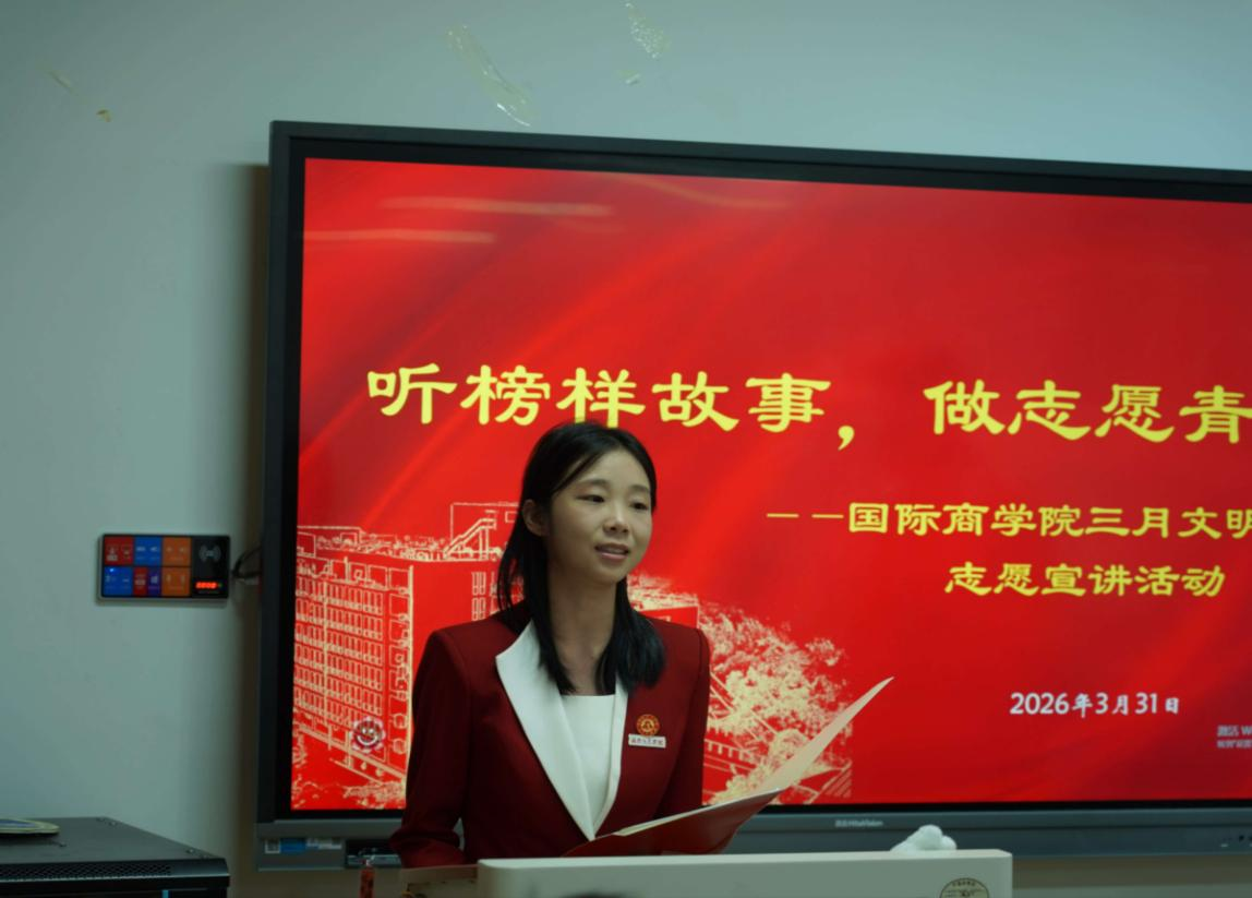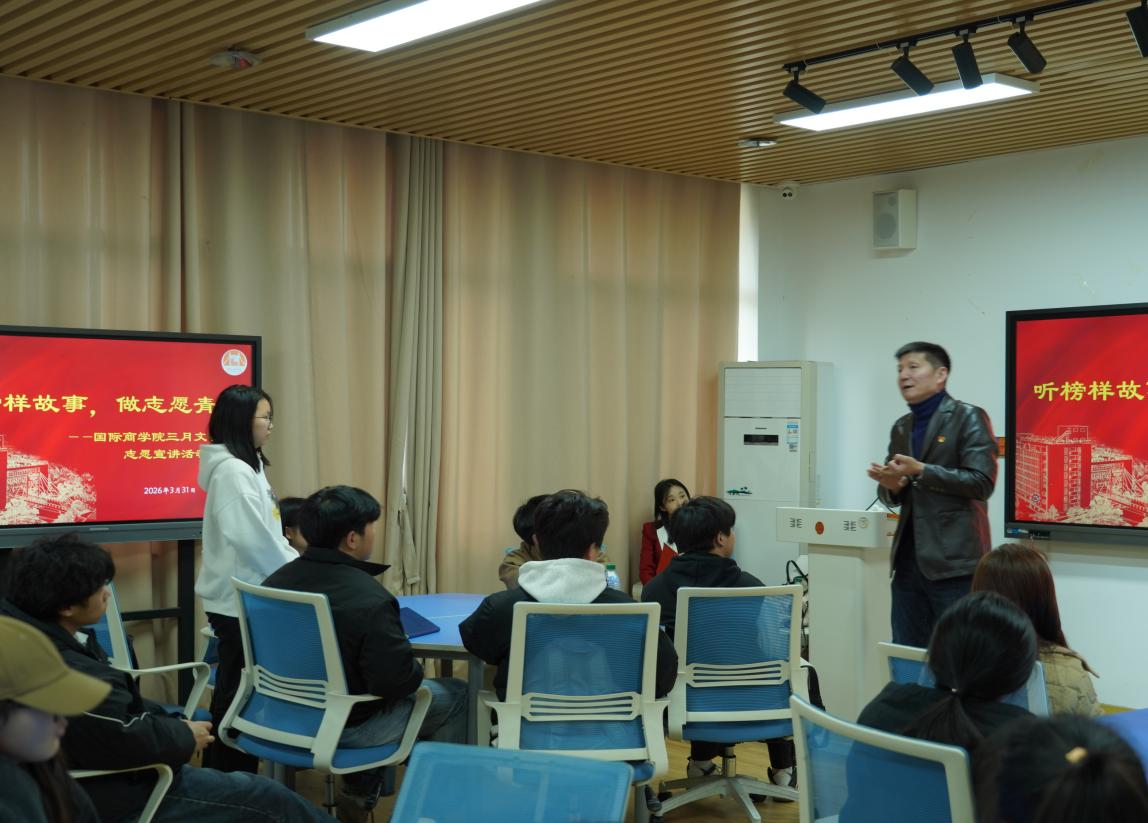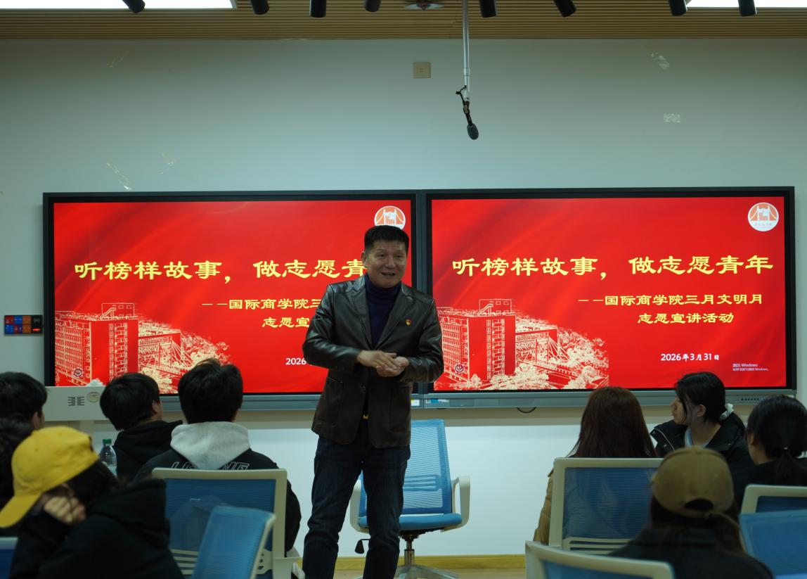 3月31日,作为国际商学院“三月文明月”的活动之一,一场题为“听榜样故事,做志愿青年”的分享会在信息中心楼402教室举行。2008年北京奥运火炬手、知名公益倡导者李新老师受邀开讲,为商青学子带来了一堂生动的环保与志愿第一课。